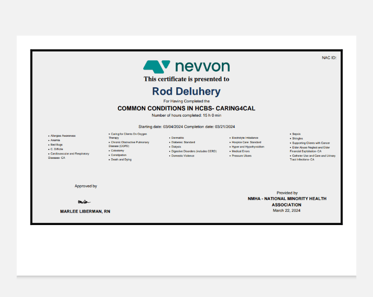 My name is Rod Deluhery and these are my caregiver certifications and trainings: