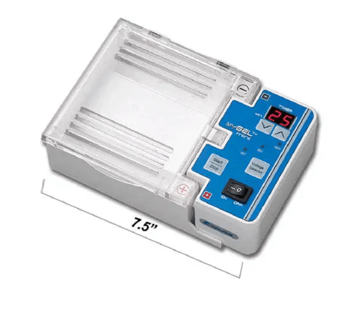 You can put many different organic molecules in the gel and they will get sorted by size. A really neat machine! Below is the machine used for this experiment: