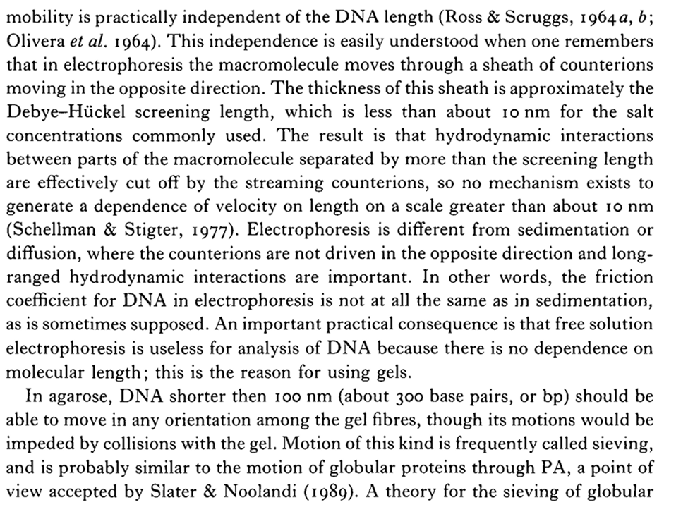 Below snip of Bruno Zimm document on electrophoresis, discussing counterions: